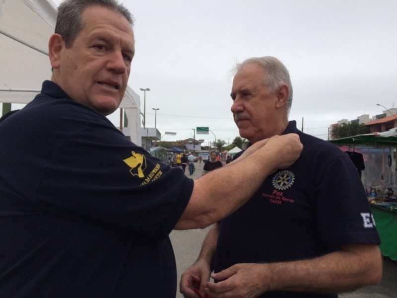 O Rotary Club de Santos apoia a ação do Projeto Pratique a Cortesia que aconteceu no domingo dia 04 de setembro pelo Interact Club de Itanhaém. O Presidente Humanitário Sérgio André Carvalho investiu o Presidente Humanitário José Roberto ? Rotary Club de Itanhaém com o Pin dos 90 anos do RCS.